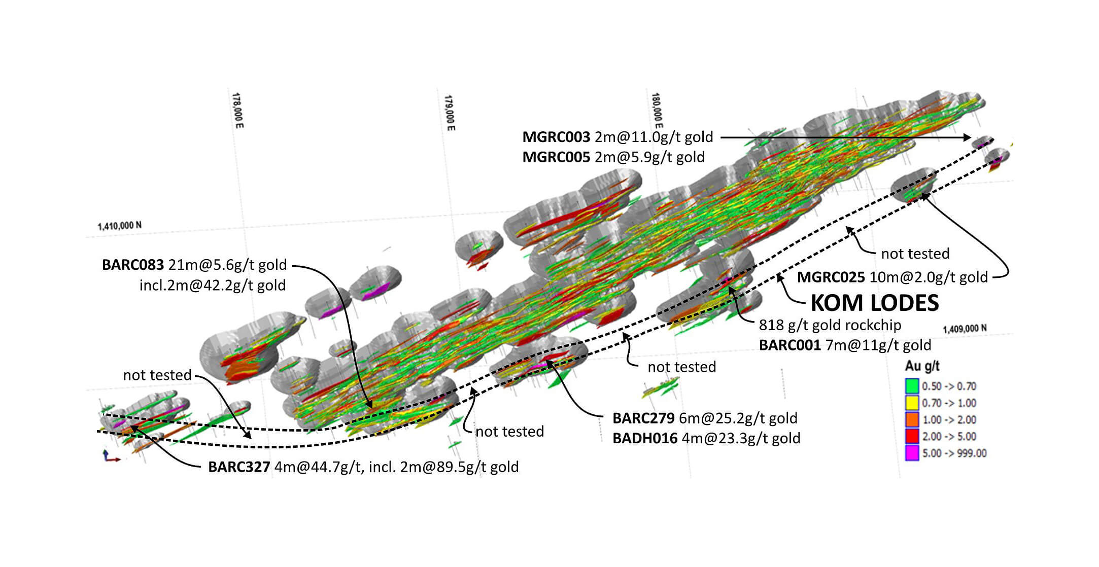 Samaradougou + Dabokuy: > 4 km long auger geochemical anomaly.