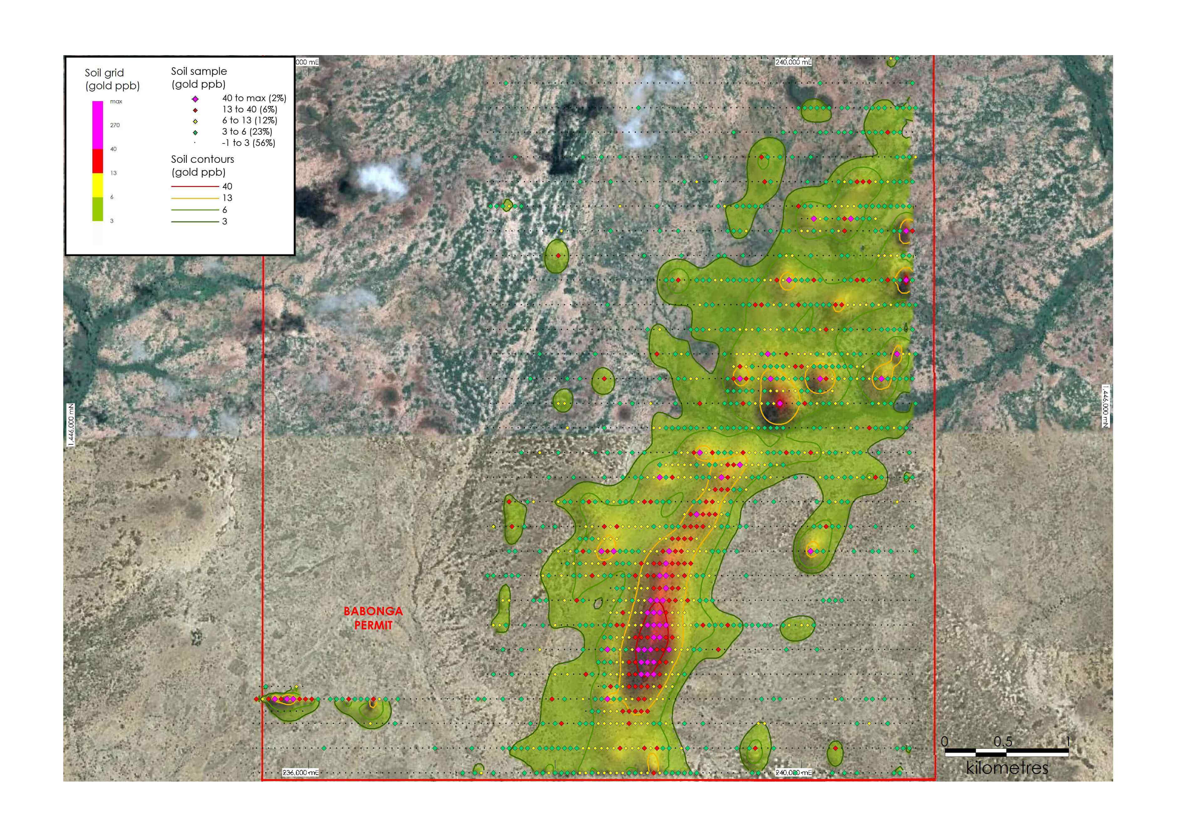 4 km long x 300 m wide consistent gold anomaly in soil (maximum Au reported is 270 ppb);